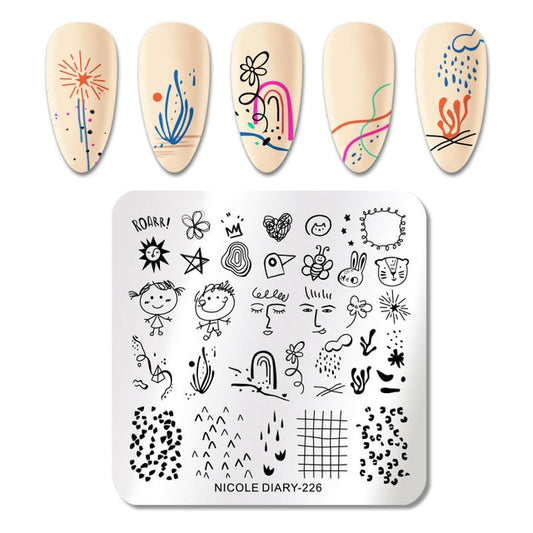 Lady Face Nail Stamp Templates Leaf Floral Printing Stencil