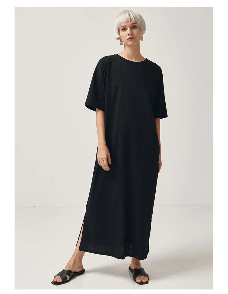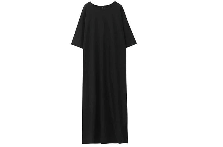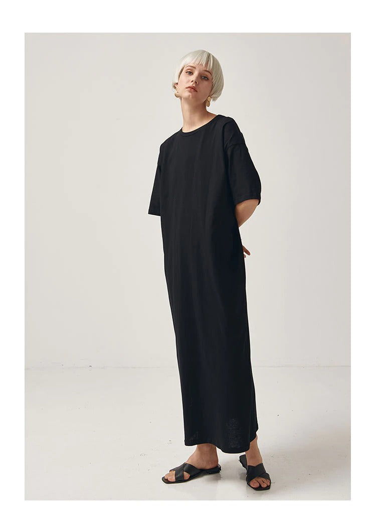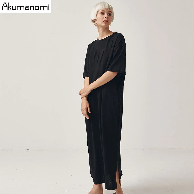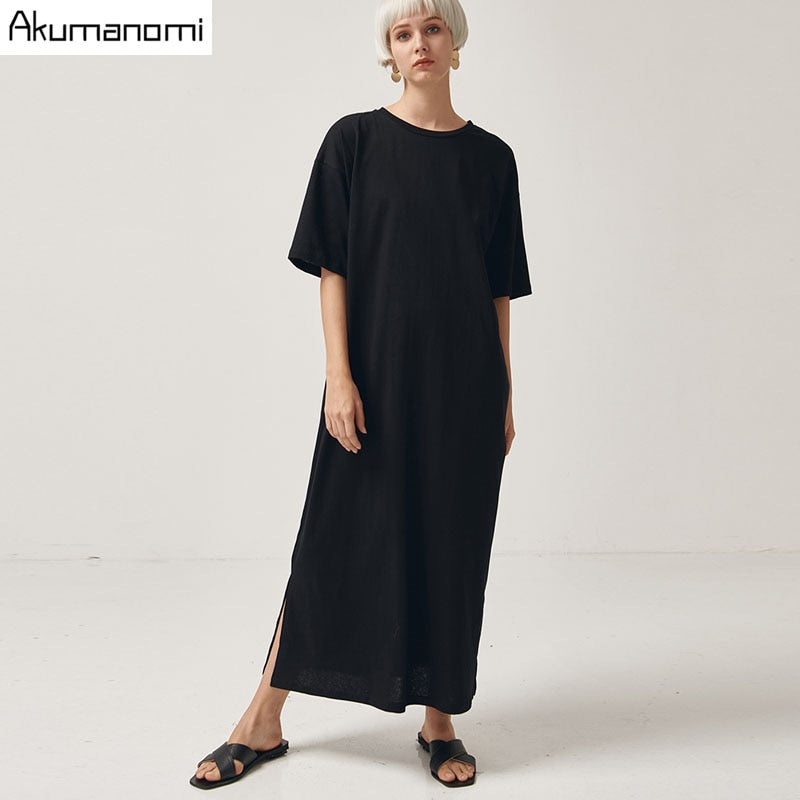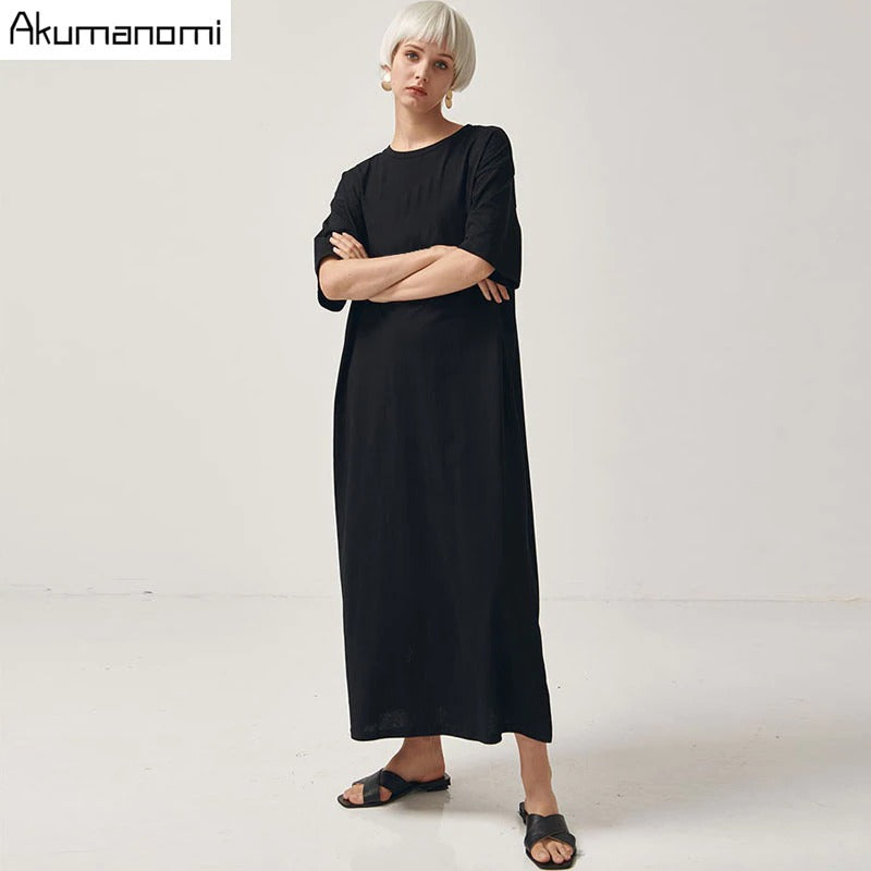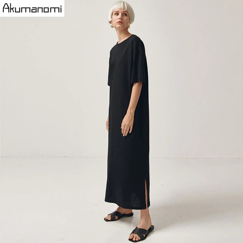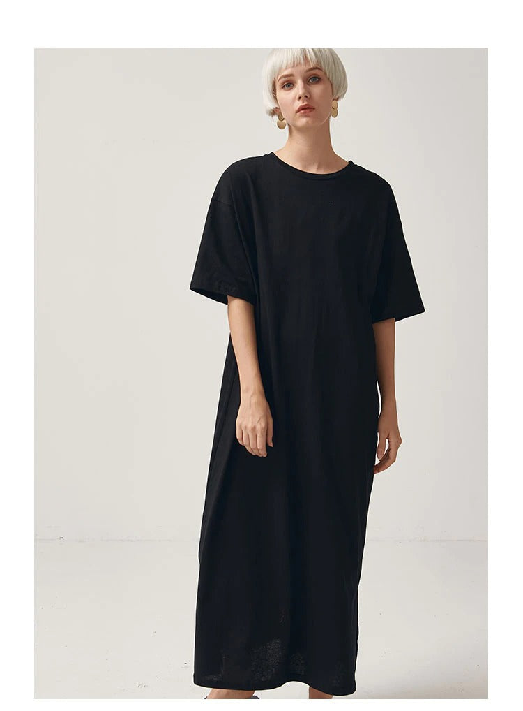 Black Cotton Long Dresses Ladies Plus Size Women Xxxl 4xl 5xl 6xl 7xl O-neck Short Sleeve Befree Maxi Casual Dress Cotton Tops