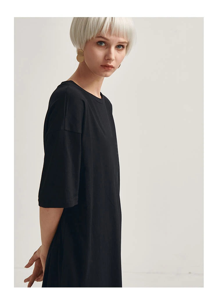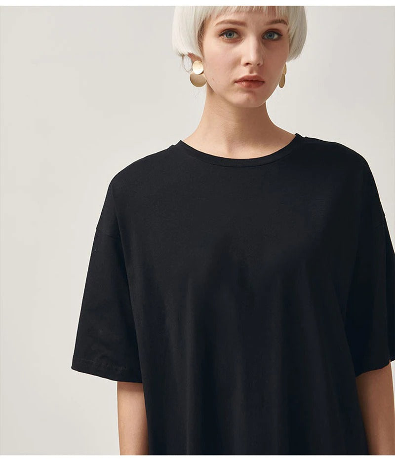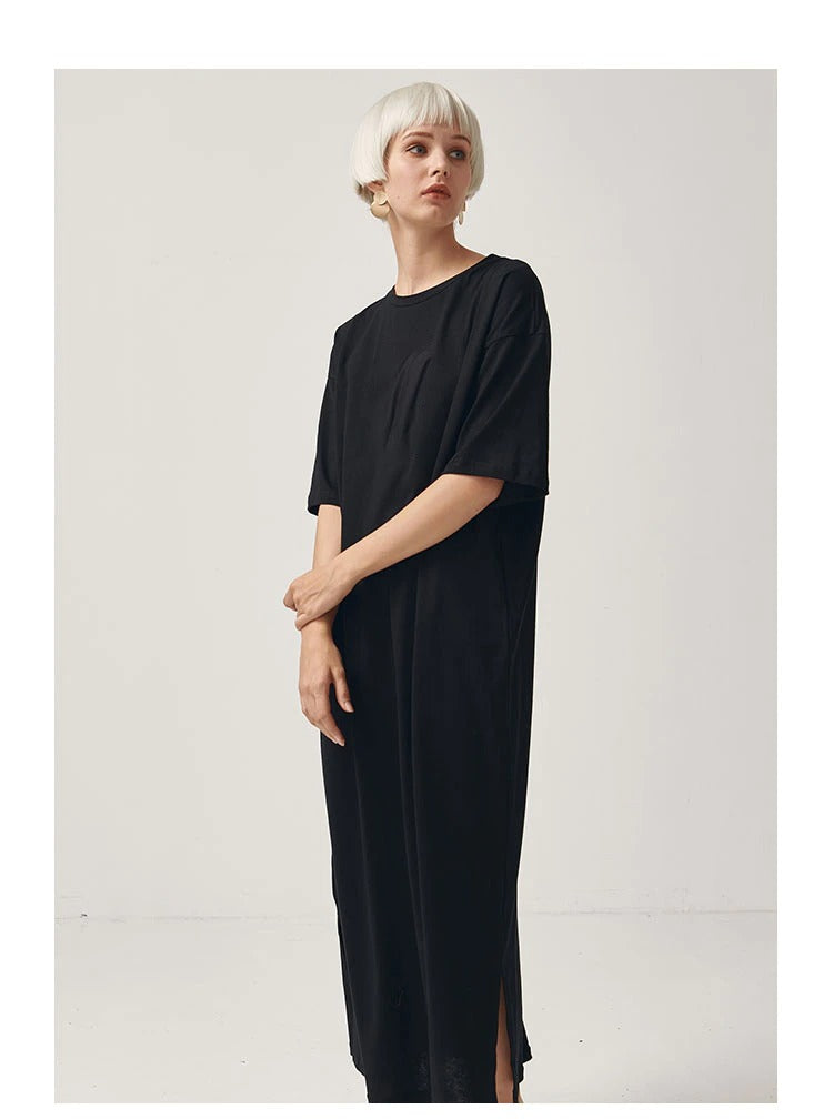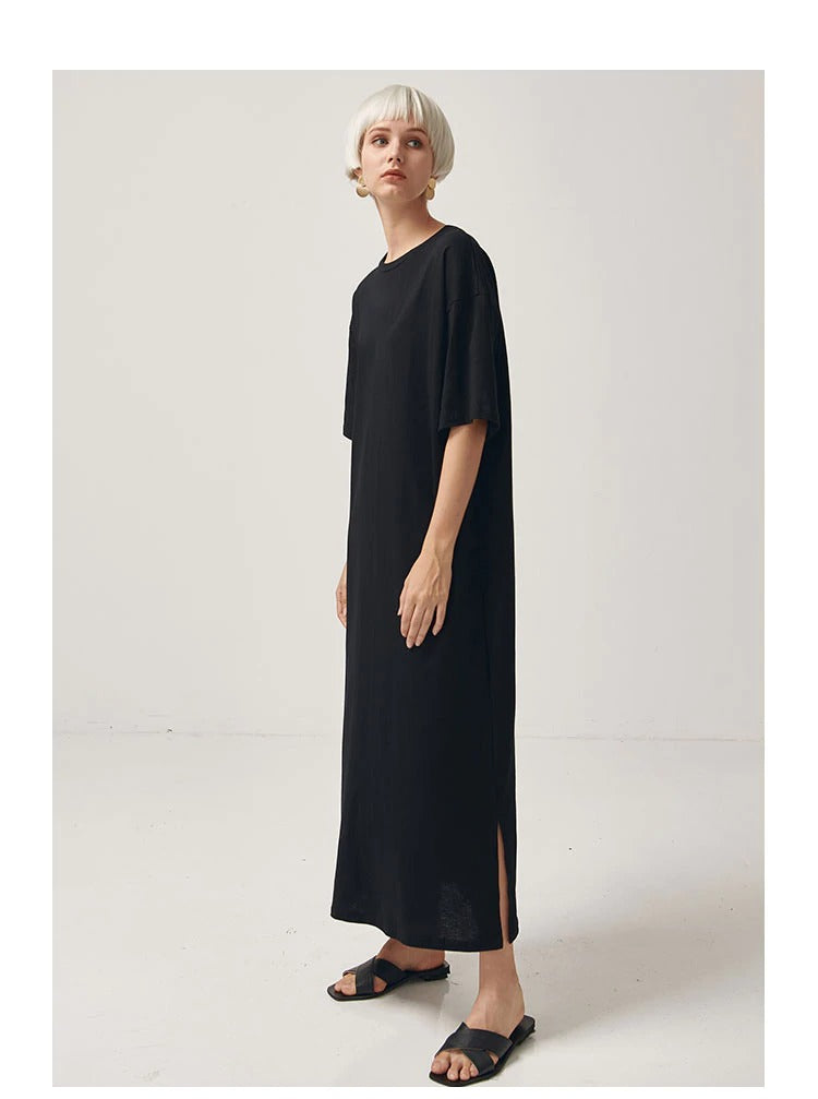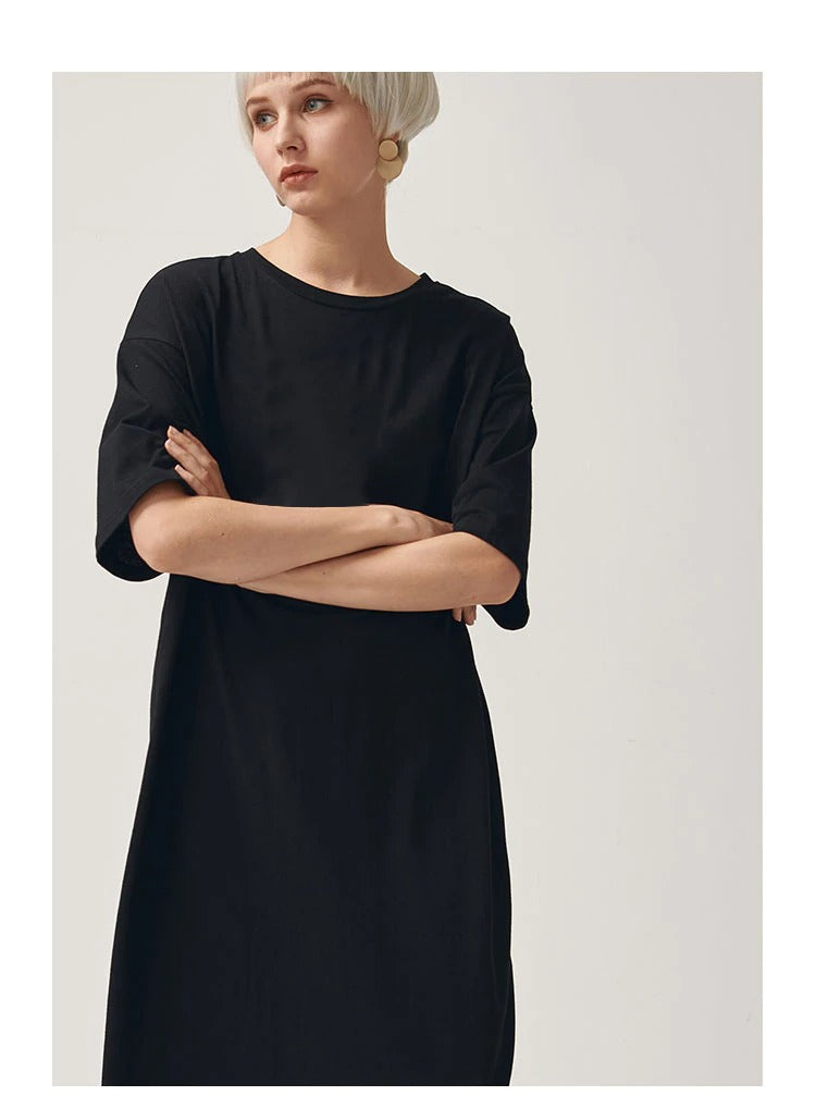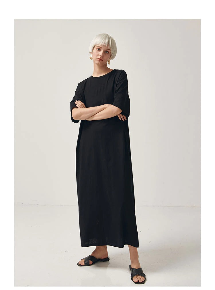 Black Cotton Long Dresses Ladies Plus Size Women Xxxl 4xl 5xl 6xl 7xl O-neck Short Sleeve Befree Maxi Casual Dress Cotton Tops