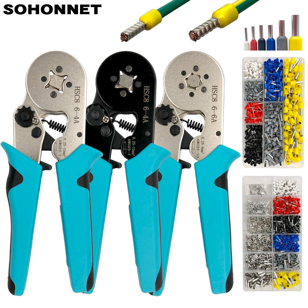 Crimping Pliers Tubular Terminal Hand Tools HSC8 6 - 4A 0.25 - 10mm2 6 - 6A 0.25 - 6mm2 Electrical Mini Wire Ferrule Clamp Kit