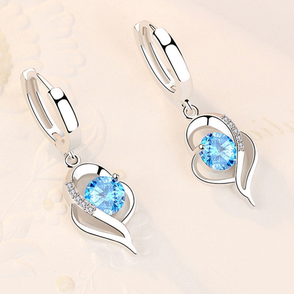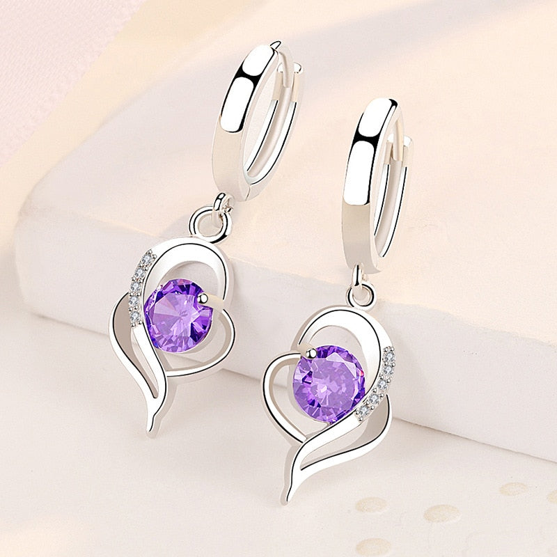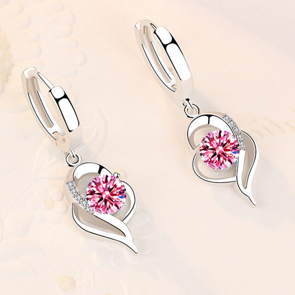 New Pink Silver Color Earrings Woman Fashion Jewelry High Quality Blue White Purple Crystal Zircon Hot Selling Earrings