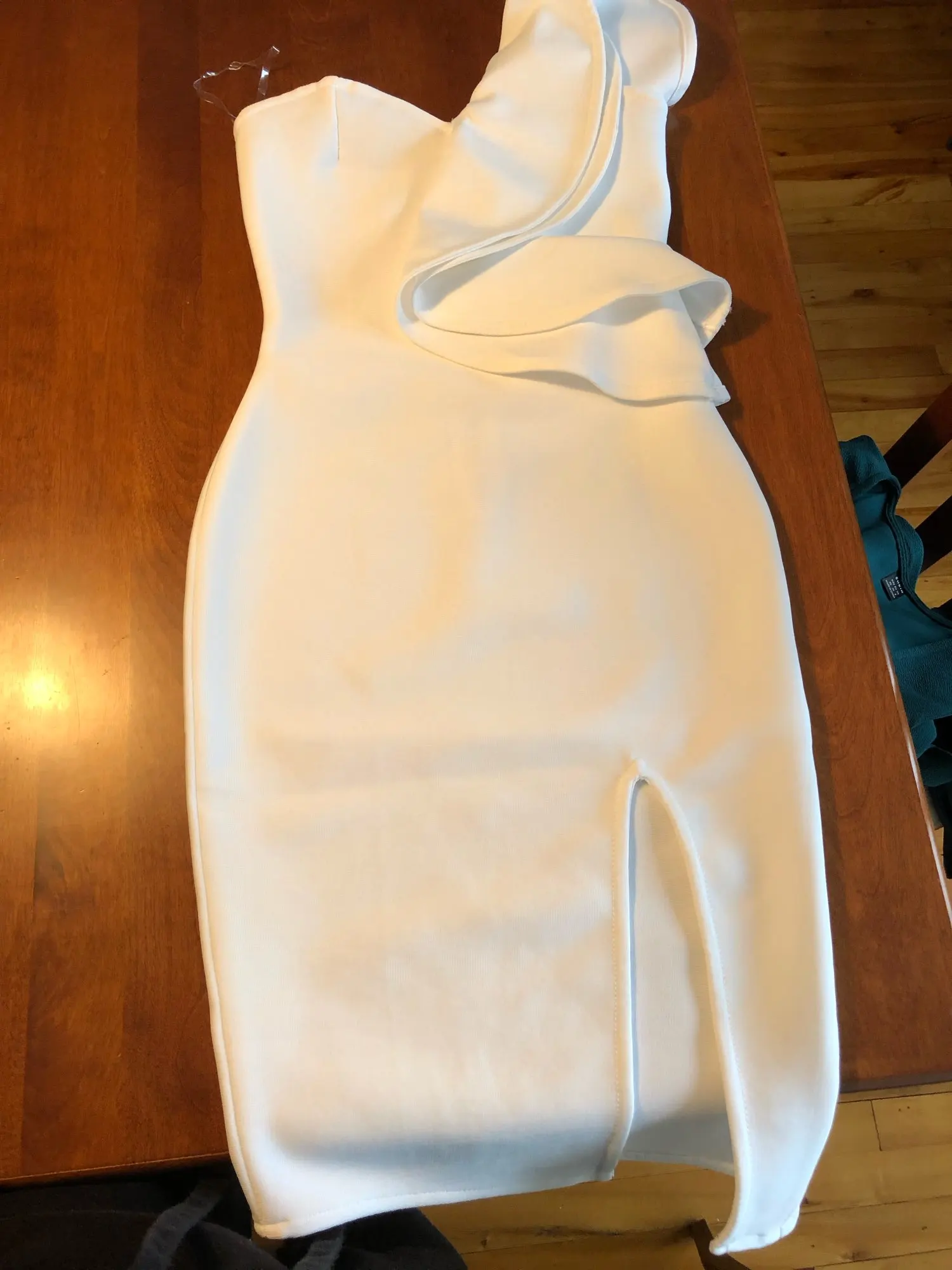 New Summer One Shoulder Women Bandage Dress Celebrity Evening Party Dress Sexy Ruffles Midi Black Bodycon Club Dress