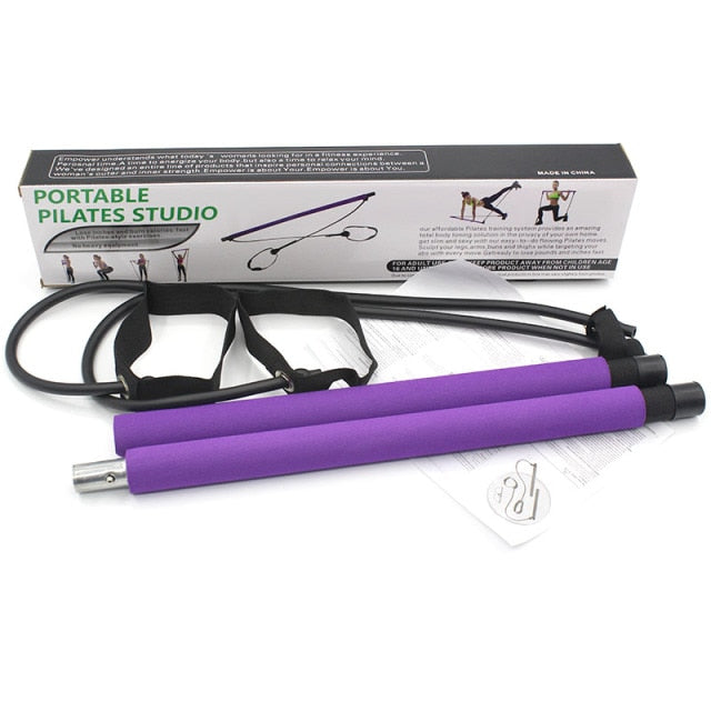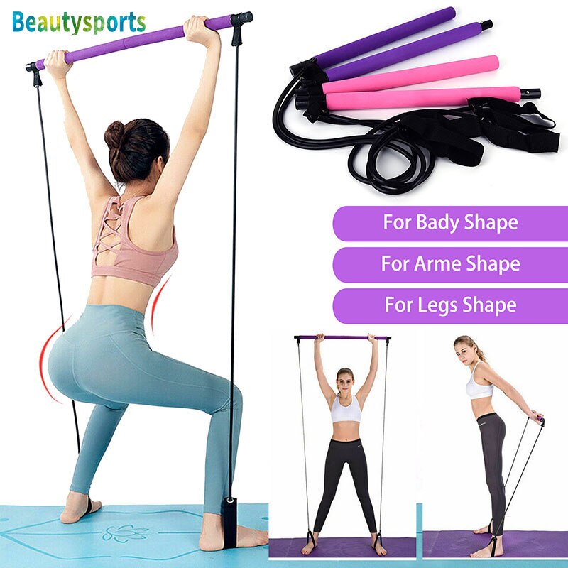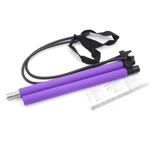 Pilates Stick Yoga Bar with Resistance Tube Elastic Rubber Bands Training Exercise Bodybuilding Fitness Crossfit Gym Equipment