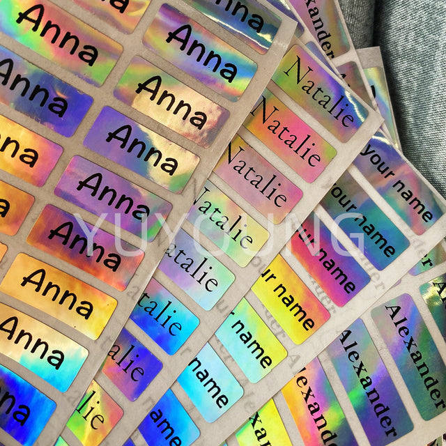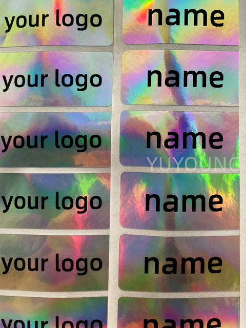 100Pieces big size 50x30mm(1.96x1.18in) Silver Laser Personalized Tag Stickers Customize Waterproof custom for logo/kids/Manicure