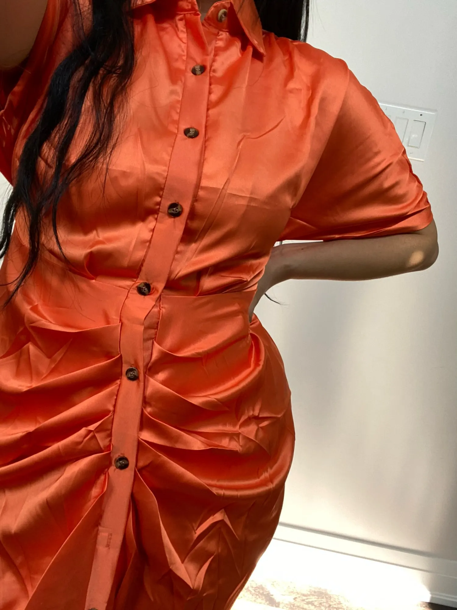 Women Summer Elegant Button Ruched Bandage Shirt Dress
